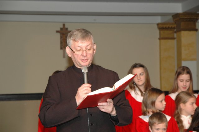 Ks.Proboszcz rozpoczął "Opłatek Parafialny" fragmentem z Pisma Świętego.